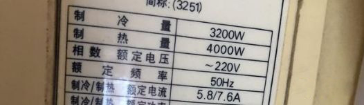我們可以直接看1.5匹的空調的銘牌,空調銘牌上面都有空調運行電流的標注,例如,上圖中的1.5匹的某空調的銘牌,我們從銘牌上可以看到空調運行時的室外機最大電流就是7.6A,室內機的電流是1.5A,那么最大總電流就是7.6A+1.5A=9.1A;